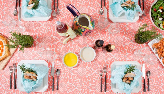 Jetting off to a Mediterranean vacation may not be in your near future but that doesn't mean you can't transport yourself there in the comfort of your own home. Our coral color palette in tablecloths, dinner napkins and cocktail napkins sets just the right look. Ah, I can almost smell the sea breezes.