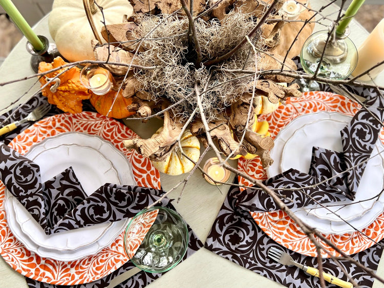 Set a frighteningly simple Halloween table with Garden Gate Licorice and Fern Orange!