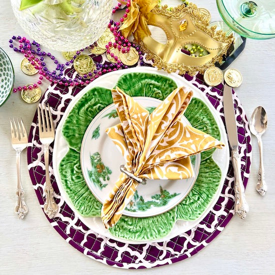 Fatten up your Tuesday routine with a Mardi Gras celebration! Feel like you are on Bourbon Street with gold, green and purple table linens, bead necklaces and festive masks. Feeling a little extra? Fold your napkin in a fleur-de-lis shape - head over to The Roost for step-by-step directions.