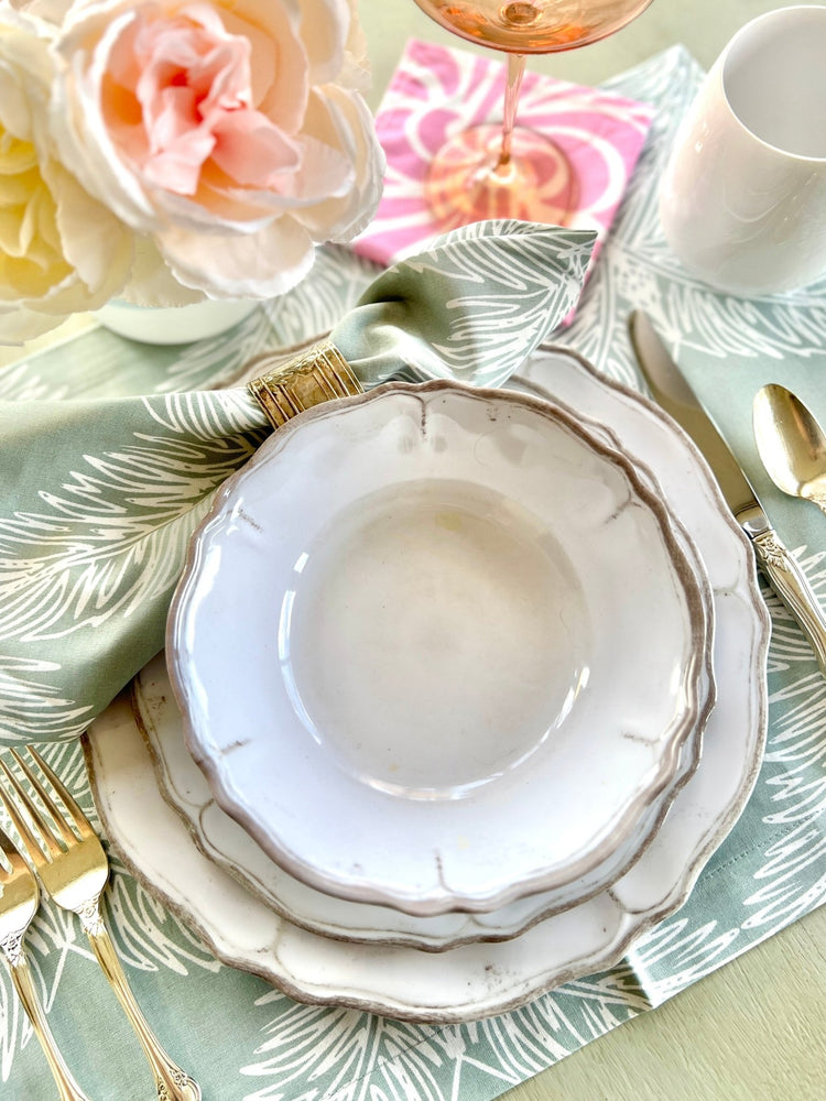 Neutrals don't have to be boring! Palm Mineral Gray is the perfect palette for any season. Keep it monochromatic with a matching tablecloth, placemats and dinner napkins or mix it up with a pop of Nouveau Orchid or Gracious Persimmon in a napkin ring or cocktail napkin.