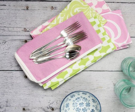 Whether your vibe is popped collar retro or monogrammed classic, our pink and green palette is a prepster paradise. Mix and match tablecloths, placemats, dinner napkins, table runners and much more!